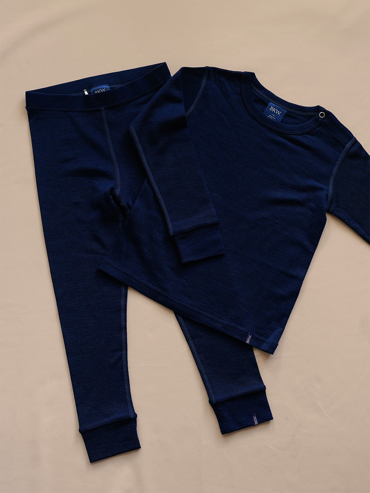 Product Name: Organic Merino Wool Kids Full Length Pyjama Set - Navy
